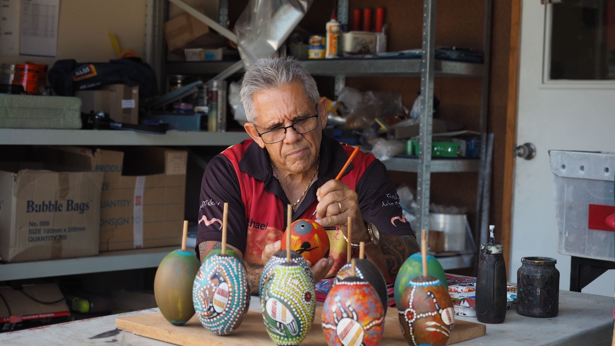 I completed a large mural at a school last week that told the story of how children are learning to use virtual reality. We intend to set up something similar, where people can virtually visit me in my shop to learn about the artwork, its meaning and the stories behind it. This will also give me the opportunity to share the significance of purchasing from Kullilla-Art and how it supports a fully operational Aboriginal business in Australia.